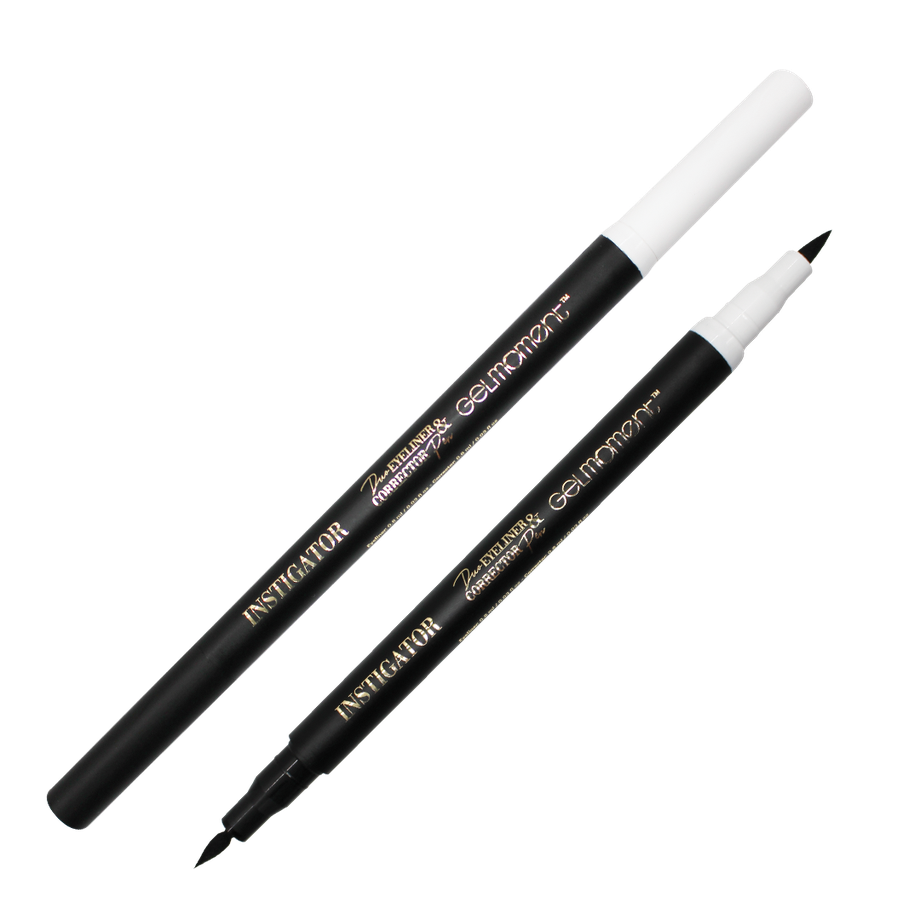 Line your eyes flawlessly with Instigator duo eyeliner and corrector pen, the ideal tool to create any look, from a thin line to a bold cat eye. Designed for beginners and experts alike, this liquid eyeliner includes a corrector pen to clean up any edges and achieve the perfect line every time. Its transfer-proof formula lasts all day without smudging so you can go about your day worry-free.
