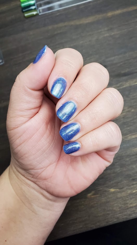 Sapphire blue. Shimmer. Sheer. Cool undertone.